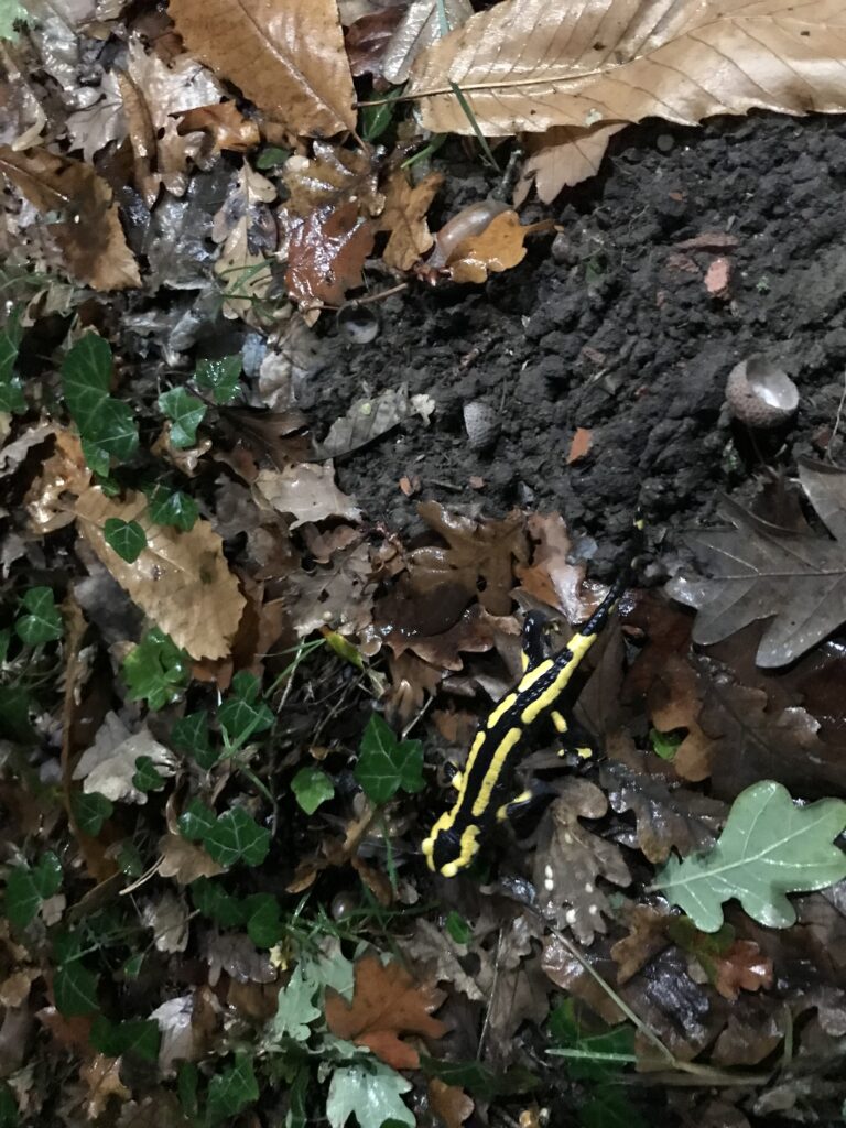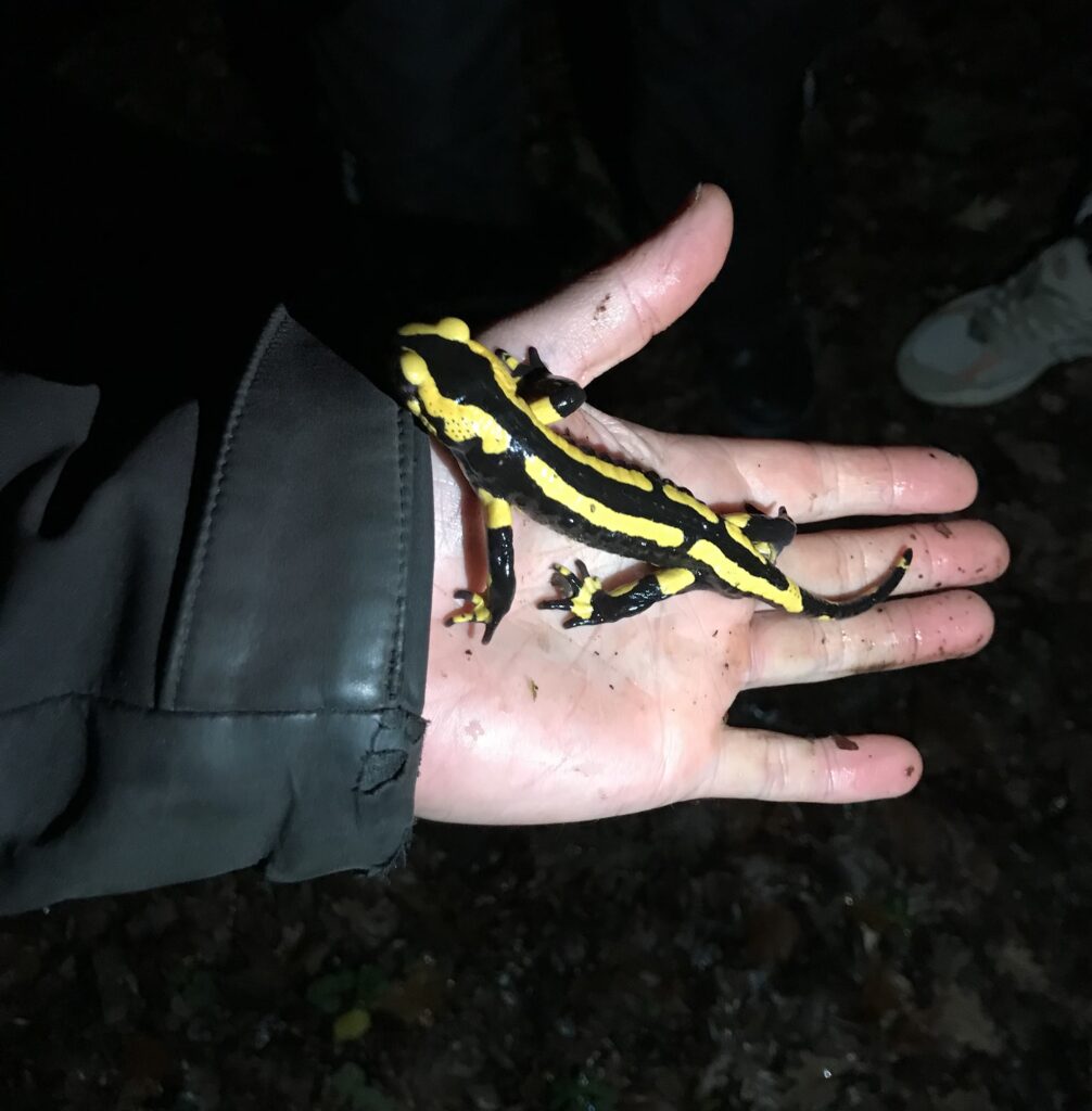 Nous sommes à la recherche des salamandres, nombreuses en cette période.