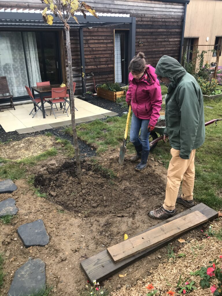 C’est la valse des pelles et des brouettes. Tout cela dans un esprit de solidarité, d’entraide, de partage des compétences. Certains passent de jardin en jardin pour prêter main forte.