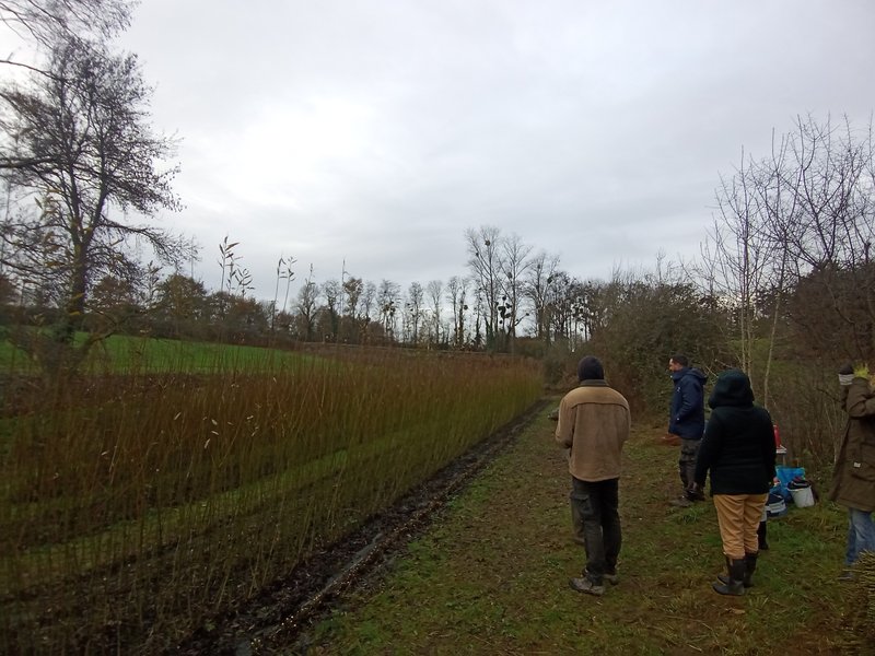 Ce premier jour de décembre a été l’occasion, pour quelques uns d’entre nous, d’aller prêter main forte à Jacky GOUBAND de Nature&Lien pour la récolte des saules, dont certains seront destinés à nos futures haies d’osier vivant plantés en février prochain.