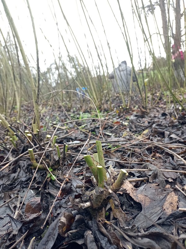 Après ce nettoyage, nous avons directement coupé les brins d’osier au pied, en faisant des fagots. Au fur et à mesure des années cela va donner une mini trogne d’où partiront encore plus de brins.